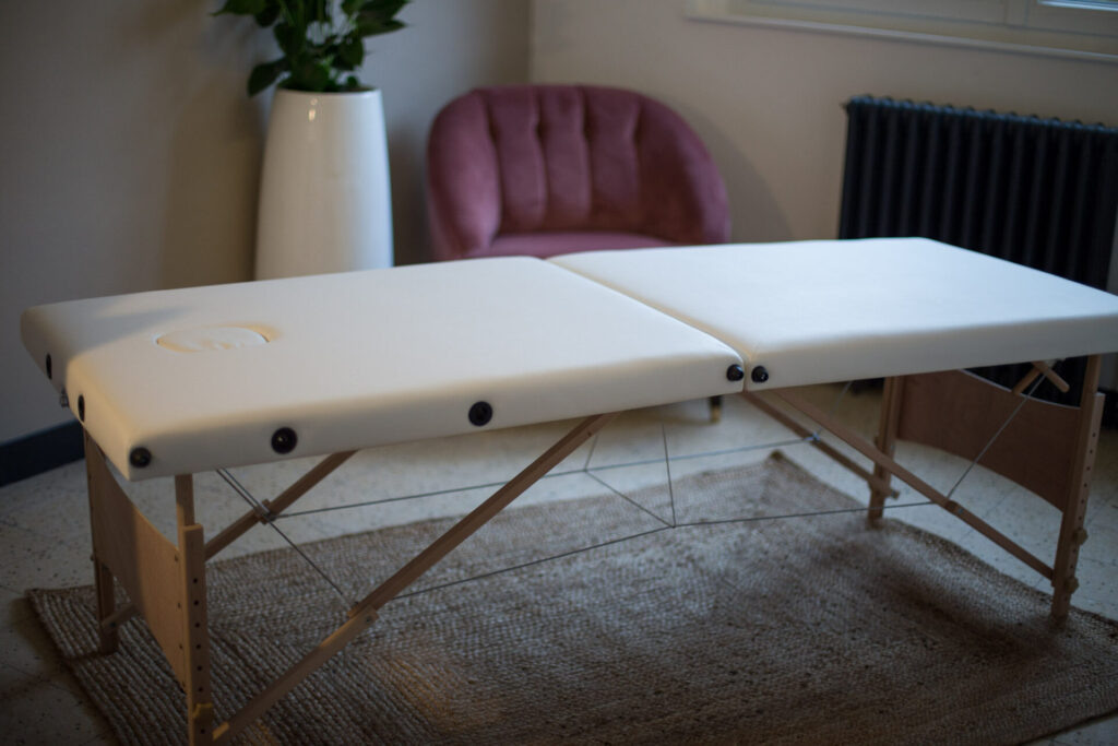 Massage à l'huile sur une table de massage.