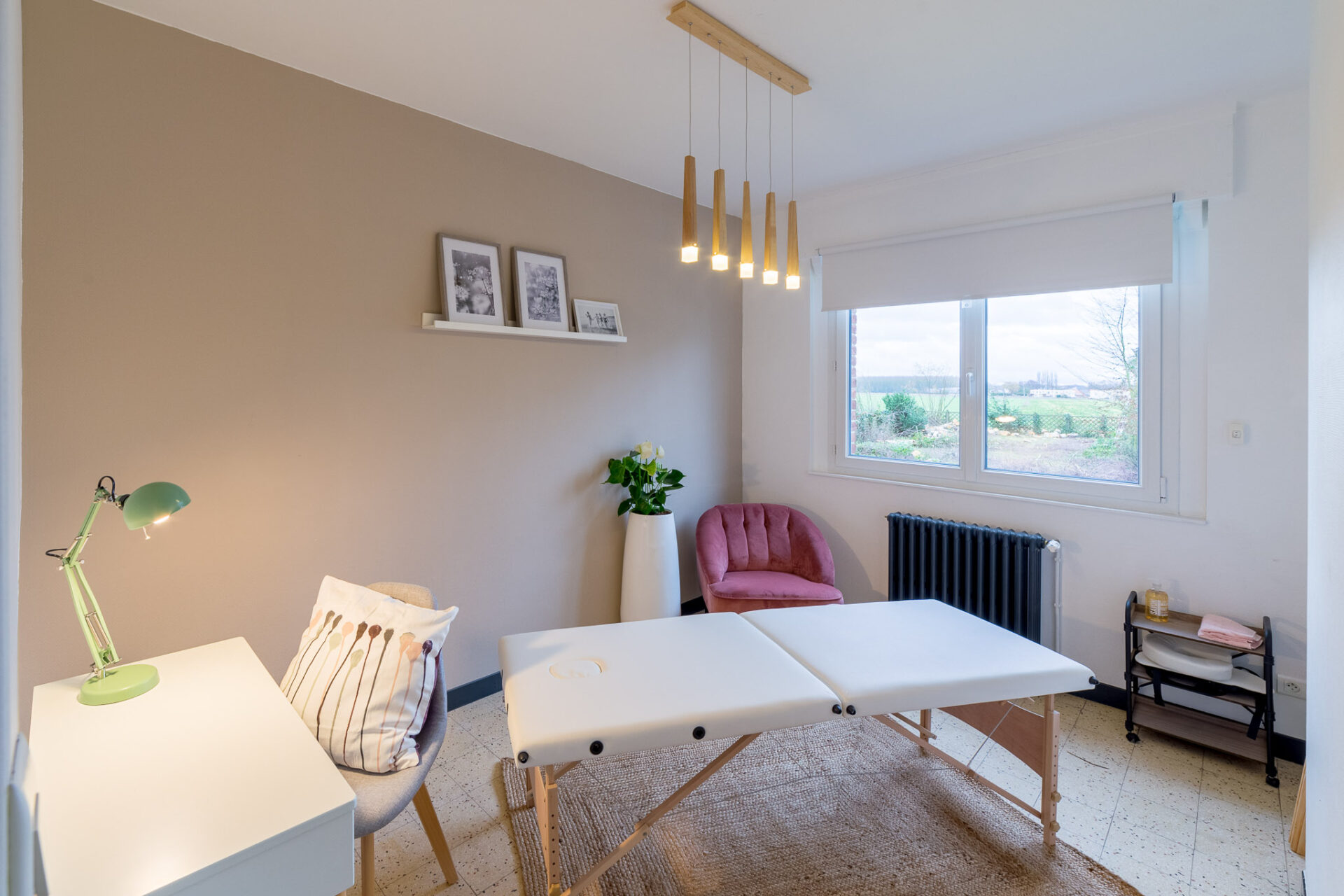 Une chaise de Amas ainsi qu’un tapis de massage sont disponibles.